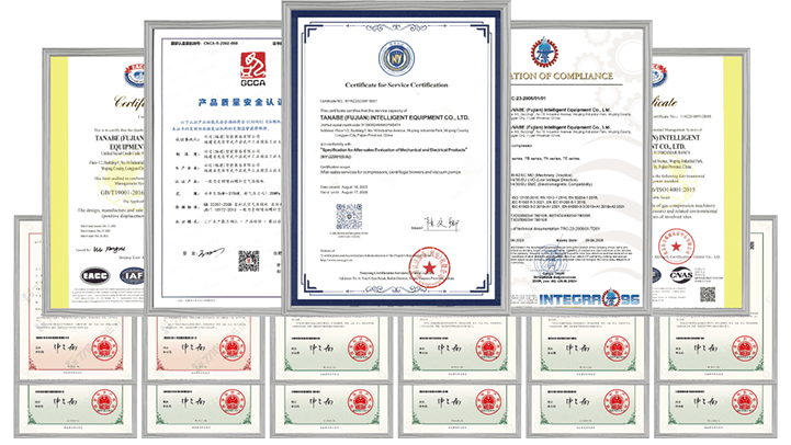 先后通过ISO9001国际质量管理认证、ISO14001环境管理认证、ISO45001职业健康安全管理认证、GCCA产品质量安全认证、机电产品售后服务认证、TÜV SÜD GREATER CHINA认证、CE认证–MD(2006/42/EC)、LVD(2014/35/EU)、EMC(2014/30/EU)及40多项专利。